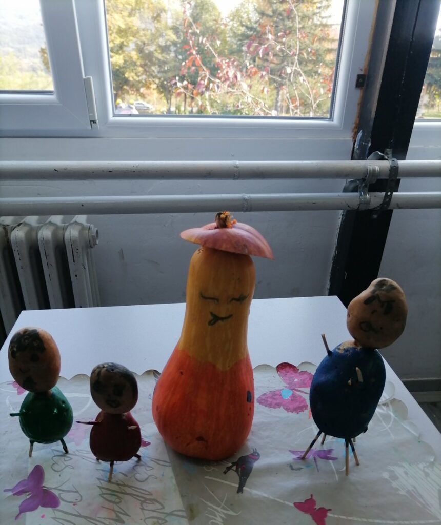 На минијатурном стаблу окачили су плодове шљиве, напунили корпу разним здравим намирницама и, уз много маште, претворили ту храну у симпатична жива бића! На овај начин спојили су знање, игру и уметност.